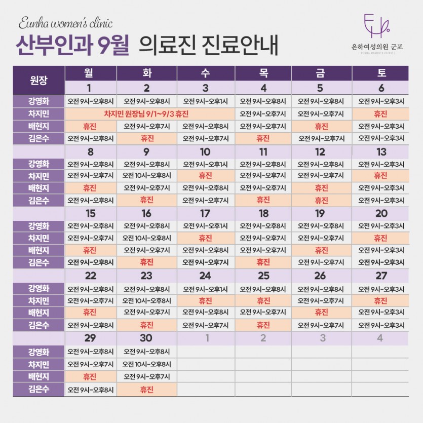 9월 의료진 진료안내 페이지 정보 작성자 최고관리자 댓글 0건 조회 477회 작성일 25-07-22 13:49 목록 본문 9월 의료진 진료안내 이전글♥은하여성의원 8월 이벤트♥ 25.08.01 다음글♥은하여성의원 7월 이벤트♥ 25.07.01 댓글 0 댓글목록 등록된 댓글이 없습니다.