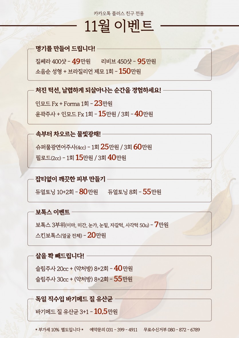 ♥은하여성의원 11월 이벤트♥ 페이지 정보 작성자 최고관리자 댓글 0건 조회 10회 작성일 25-11-01 07:44 목록 본문 ♥은하여성의원 11월 이벤트♥ 이전글11월 의료진 진료안내 25.11.01 다음글10월 의료진 진료안내 25.10.01 댓글 0 댓글목록 등록된 댓글이 없습니다.